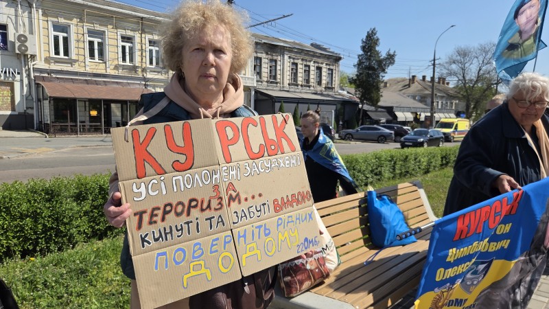 Наталя приїхала з Хмельниччини до Миколаєва на акцію-нагадування про полонених та зниклих безвісти. Каже, чекає на повернення зниклих безвісти чоловіка та сина.