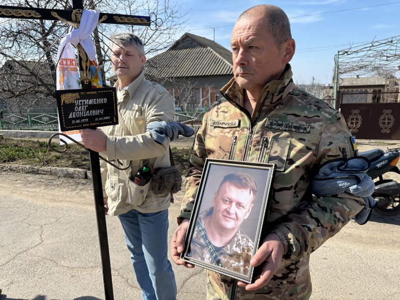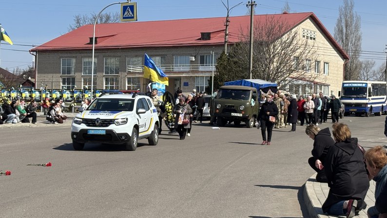У селищі Доманівка на Миколаївщині провели в останню путь військовослужбовця Олега Устименка. Захисник загинув 13 березня 2026 року під час виконання завдання на Дніпропетровщині.