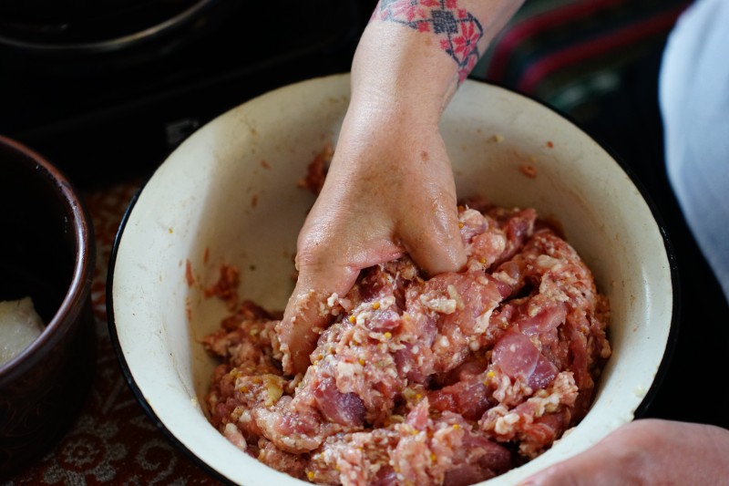 Наталя власноруч вимішує м’ясний фарш із гірчицею в зернах та спеціями. Суспільне Миколаїв/Олександр Гордієнко