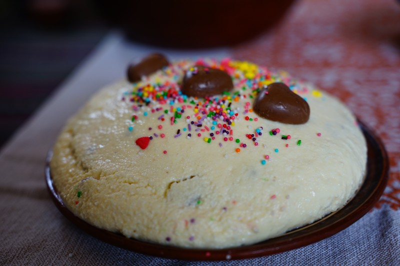 "Вона робиться з сиру, вершкового масла, яєць. Вона не печеться. Вважається, що це заварна паска. Там родзинки. І ось ми це все змішали і на ніч поставили під гніт", — каже господиня.