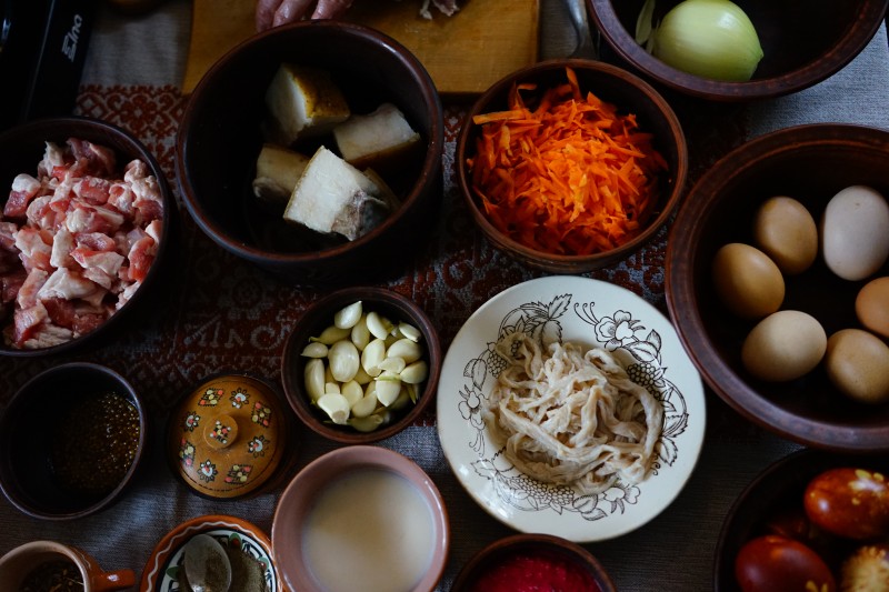 За словами Наталі, для страви потрібні почеревина, сало, цибуля, морква, часник, яйця та спеції. Спочатку всі інгредієнти обсмажують без пшона.