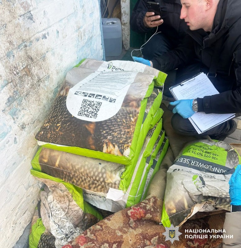 Насіння соняшника, вилучене у підозрюваних. Національна поліція Миколаївщини