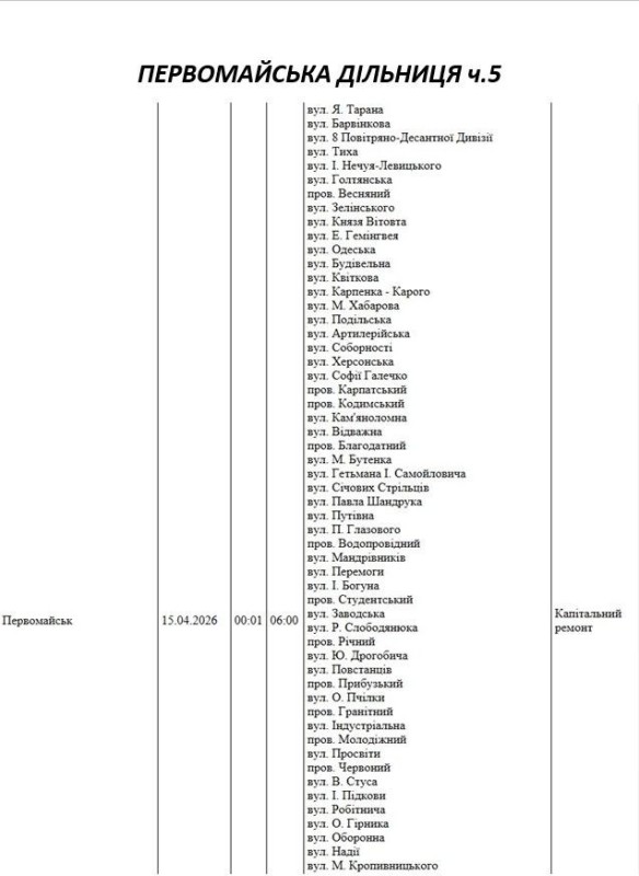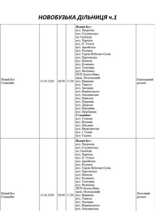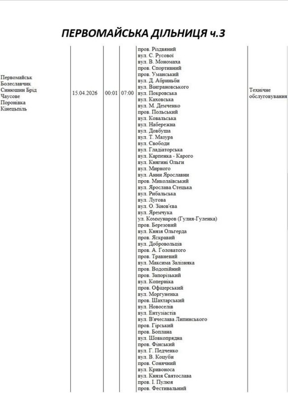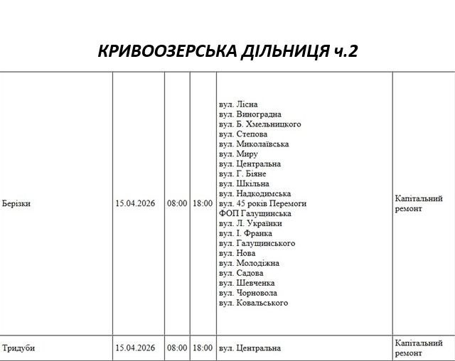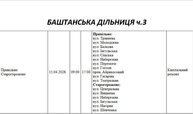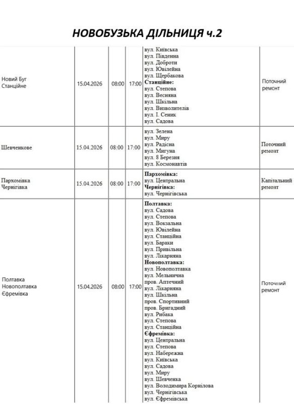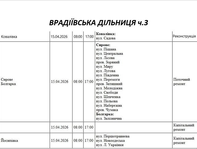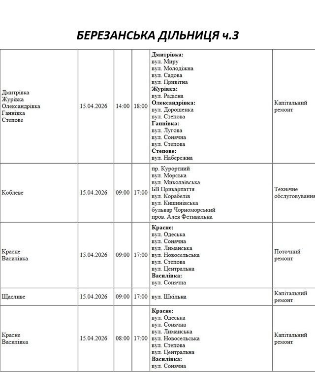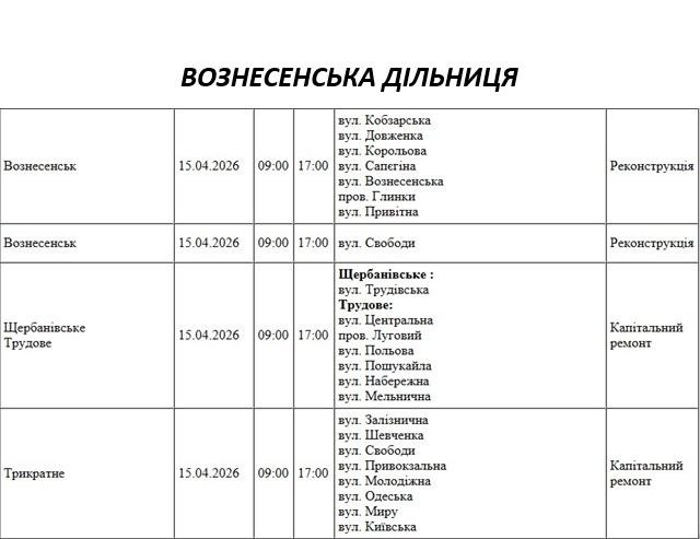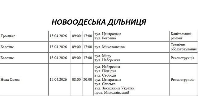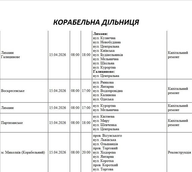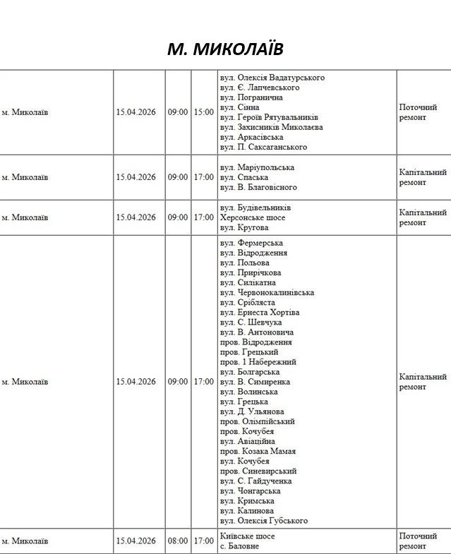На Миколаївщині 15 квітня деякі вулиці залишаться без електропостачання. Це пов'язано із поточними ремонтними роботами, реконструкціями та технічним обслуговуванням.Про це 14 квітня повідомили в АТ "Миколаївобленерго".Миколаїв, Корабельна та Варварівська дільниці