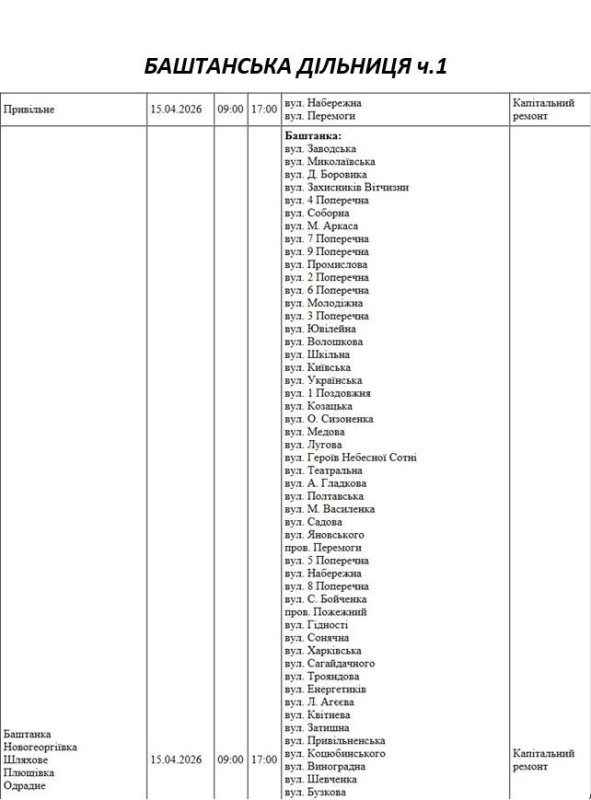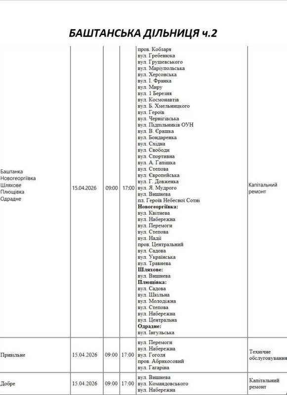 Баштанська дільниця АТ «Миколаївобленерго» Інші дільниці