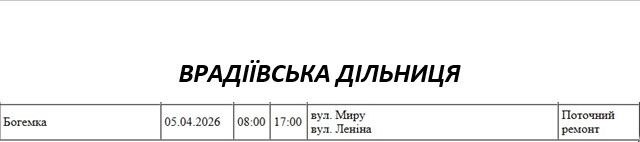 Графік планових робіт у Врадіївській дільниці, 5 квітня АТ «Миколаївобленерго»
