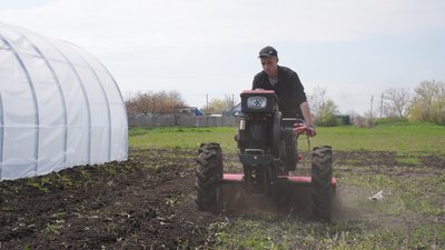 Олексій мотоблоком культивує город. Суспільне Миколаїв/Юлія ГолокозКоманди німецькою і вправи тричі на тиждень: як тренують поліцейського собаку Еджера
