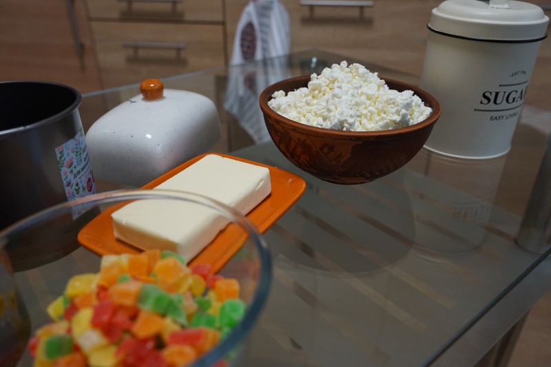 Такий рецепт зараз у тренді, говорить Олеся. За її словами, сирна паска підходить для тих, хто дотримується правильного харчування, адже містить лише безлактозний сир і трохи цукру. Жодного борошна. Також знадобляться яйця та цукати.