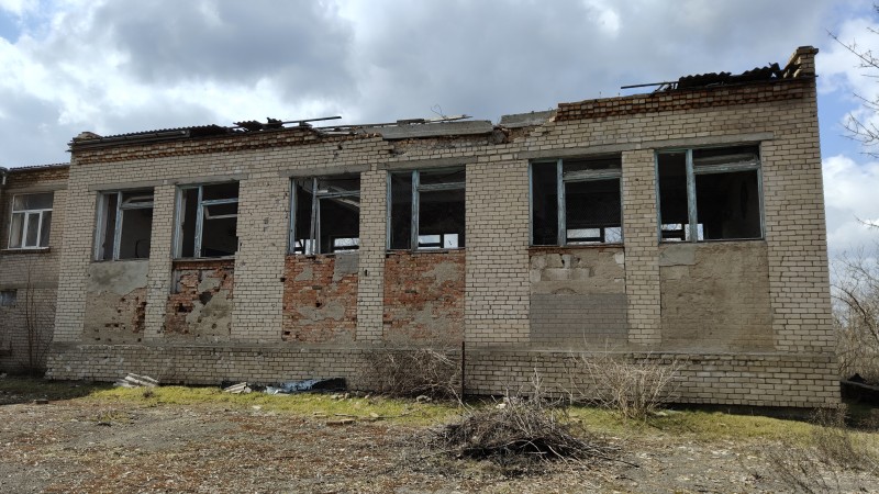 Пошкоджений внаслідок обстрілів навчально-освітній комплекс у Квітневому. Суспільне Миколаїв/Федір Бондар