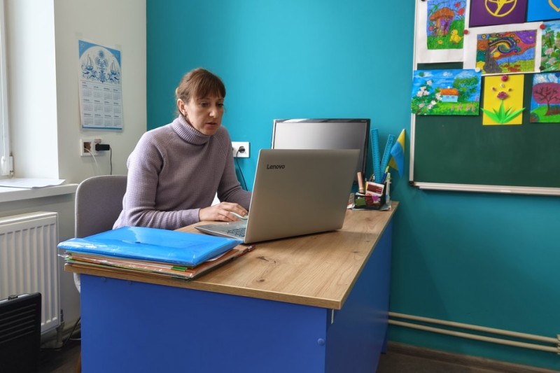 Вчителька мистецтва та технологій Первомайського ліцею Ірина Сікорська каже, щодня проводить по шість-сім уроків. Учні живуть у різних селах громади: хто ближче — до 12 години навчаються у тимчасовому освітньому просторі, ще три уроки для всіх онлайн, а для цього потрібен якісний інтернет.