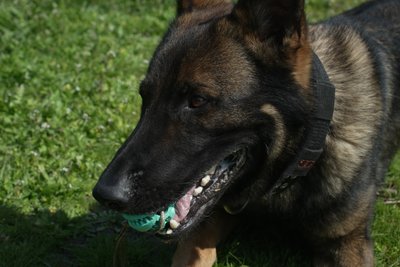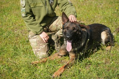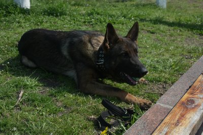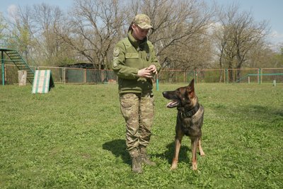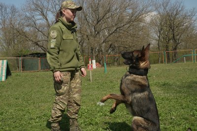 У Миколаєві поліцейський службовий собака Еджер тричі на тиждень тренується для майбутньої роботи на розшуковій лінії. Під час тренувань кінологиня використовує німецькі команди.