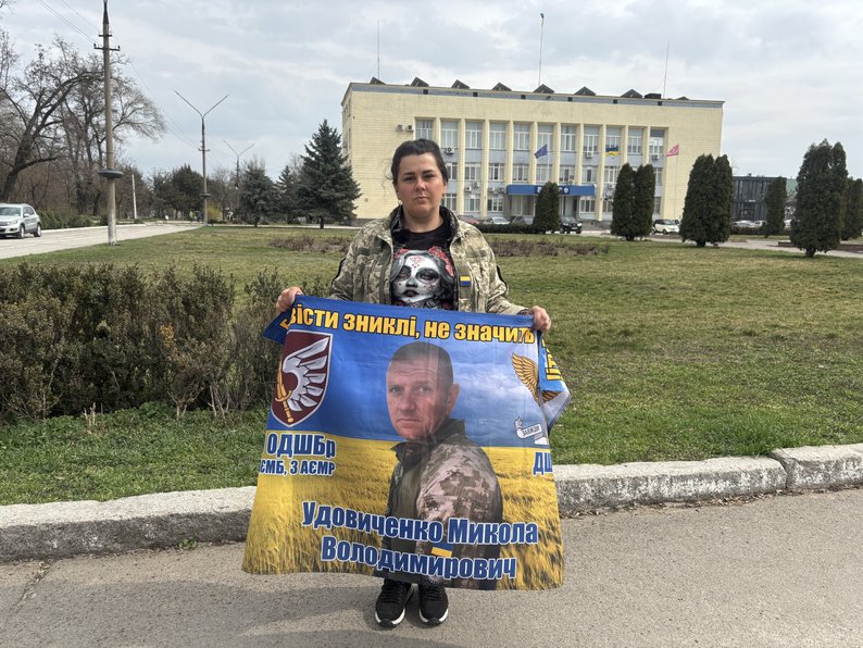 На акцію прийшла також жителька селища Щербанівське Світлана Удовиченко. Вона чекає на свого чоловіка Миколу Удовиченка.