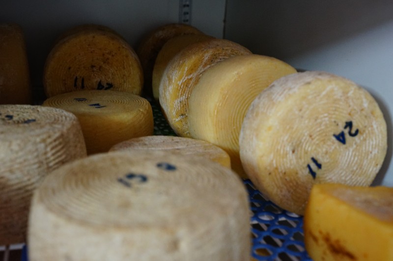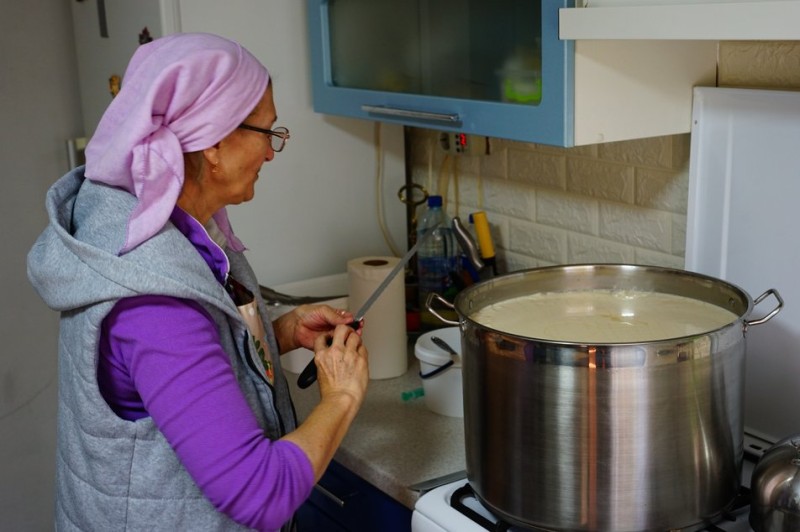 "Качотта з пажитником — дуже ходовий сир, найбільше його замовляють. Ось кавовий я вже зварила. Вчора робила камамберчики стабілізовані. Сьогодні топлене молоко", — показує сирні бруски господиня.
