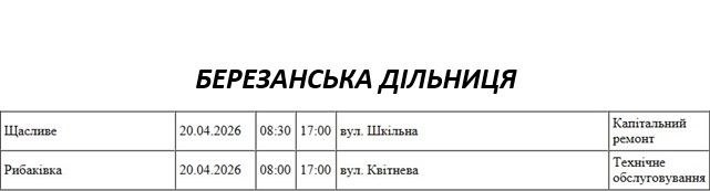 Графік відключення світла по адресах 20 квітня, Березанська дільниця АТ «Миколаївобленерго»
