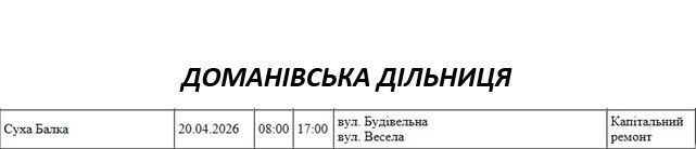 Графік відключення світла по адресах 20 квітня, Доманівська дільниця АТ «Миколаївобленерго»