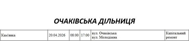 Графік відключення світла по адресах 20 квітня, Очаківська дільниця АТ «Миколаївобленерго»