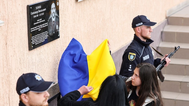 У Новій Одесі, що на Миколаївщині, 8 квітня відкрили меморіальну дошку поліцейському Олександру Хомину, який загинув у липні 2023 року під час бойового завдання на Донеччині.