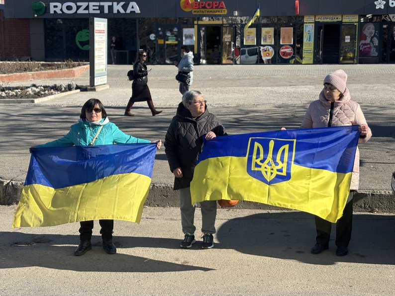 Жінки з прапорами проводжають загиблого військовослужбовця Валерія Козака. Суспільне Миколаїв