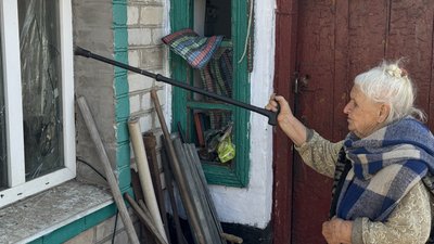 "Онуку чотири пальця зашили. Сильно і сильно потрощене скло дрібне. В онучки (дружина онука — ред.) теж скло зайшло. В ногу скло таке зайшло, що аж у кісточки. Не можуть витягнути. До сих пір не витягнули", — розповіла жінка.
