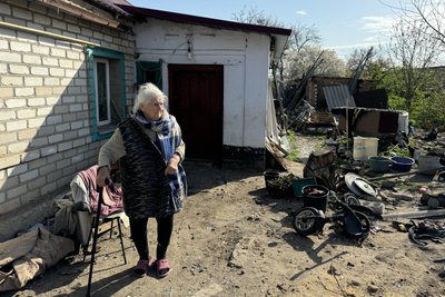 Любов Миколаївна на подвір’ї пошкодженого будинку. Суспільне Миколаїв/Юлія Філімон