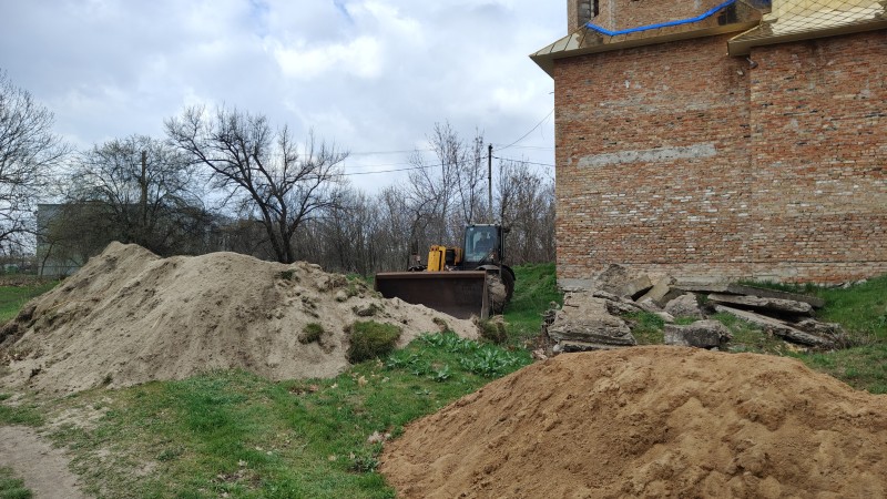 На початку квітня з’явилася можливість взятися за облаштування майданчика біля храму, каже староста церковної громади Володимир Олексій. Востаннє виконували будівельні роботи перед повномасштабним вторгненням. Потім усі гроші, що збирала місцева громада Православної церкви України, спрямовували на допомогу ЗСУ.
