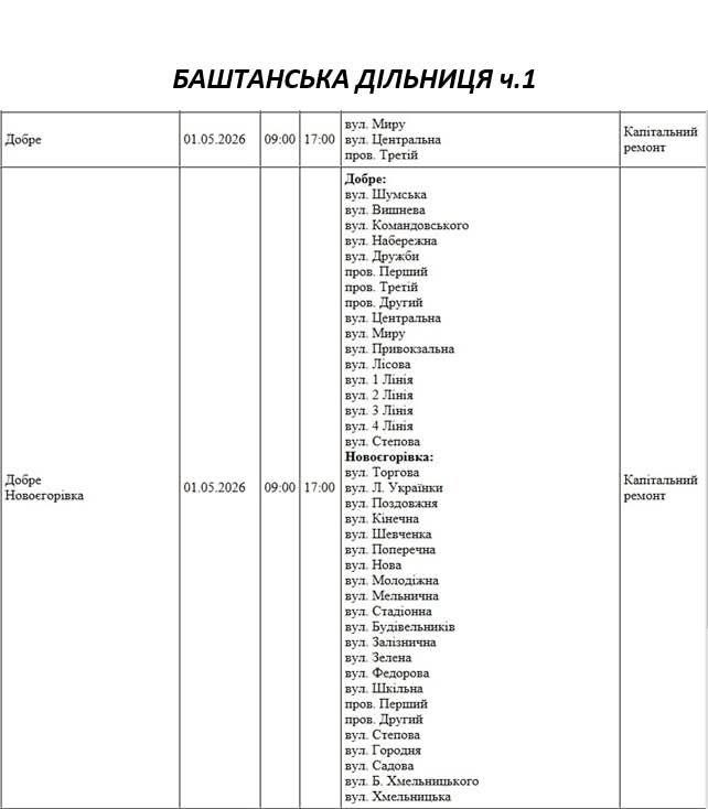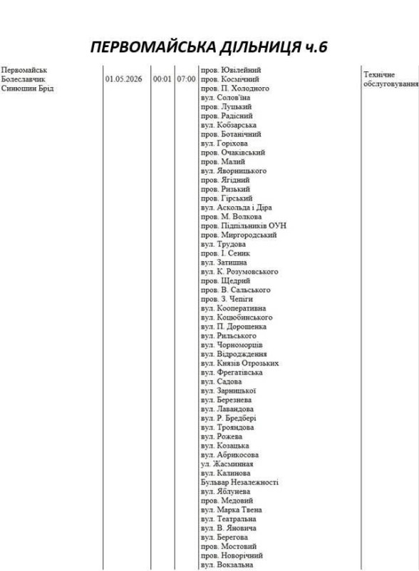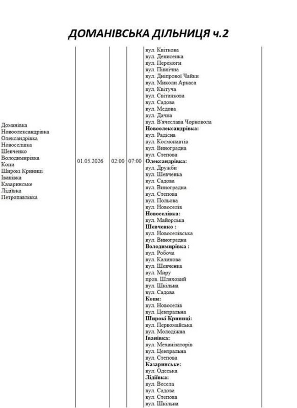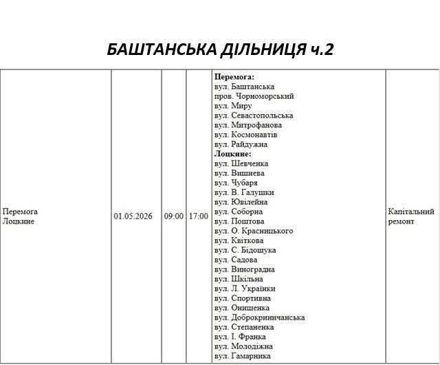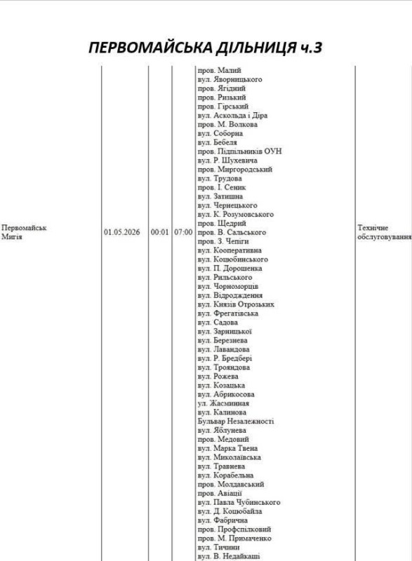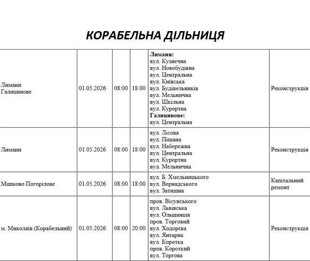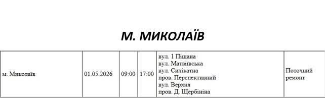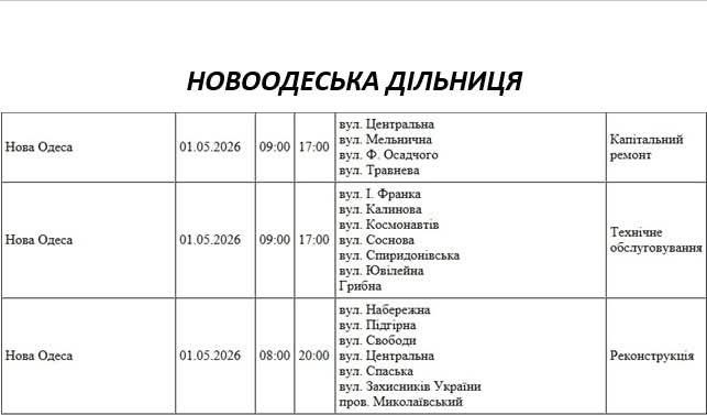 На Миколаївщині 1 травня деякі вулиці залишаться без електропостачання. Це пов'язано із поточними ремонтними роботами, реконструкціями та технічним обслуговуванням.