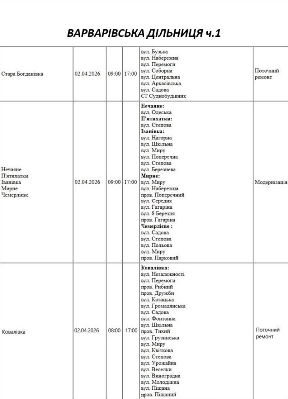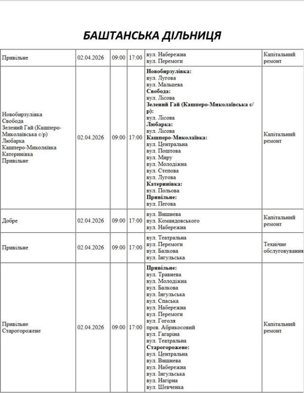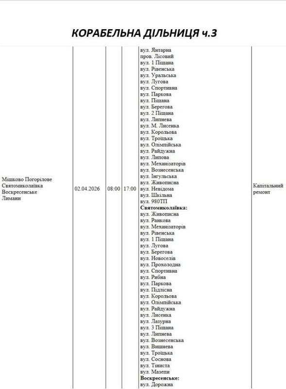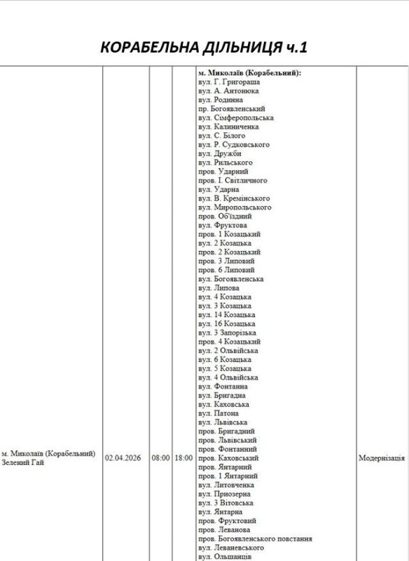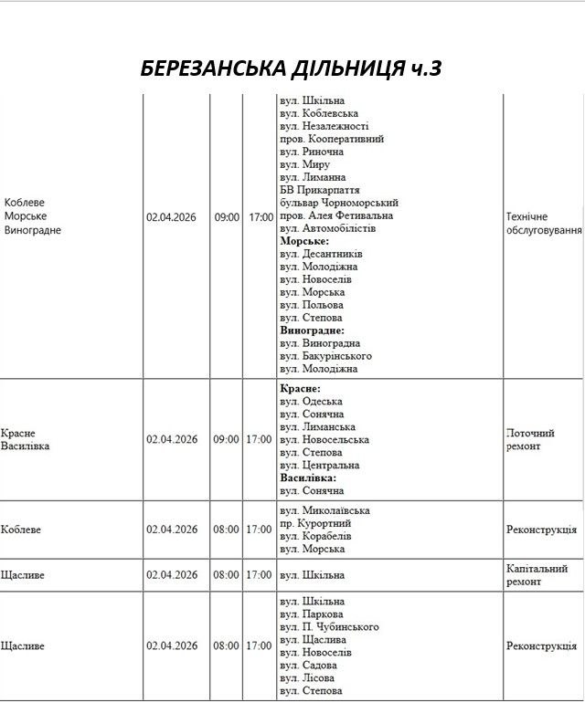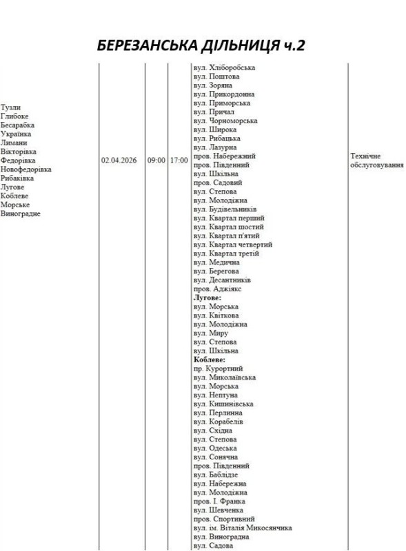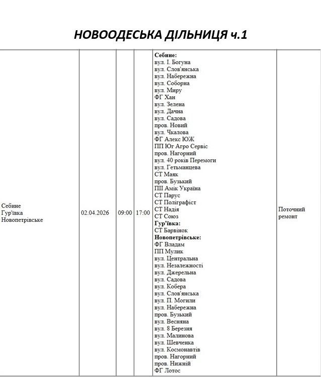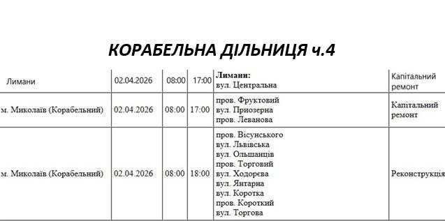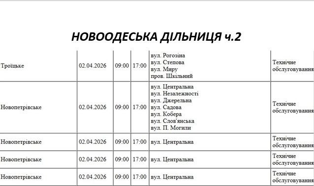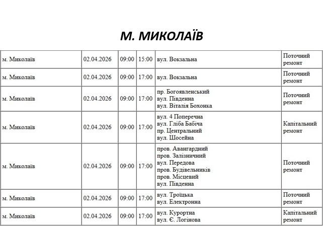 На Миколаївщині 2 квітня деякі вулиці залишаться без електропостачання. Це пов'язано із поточними ремонтними роботами, реконструкціями та технічним обслуговуванням.