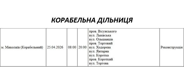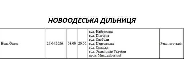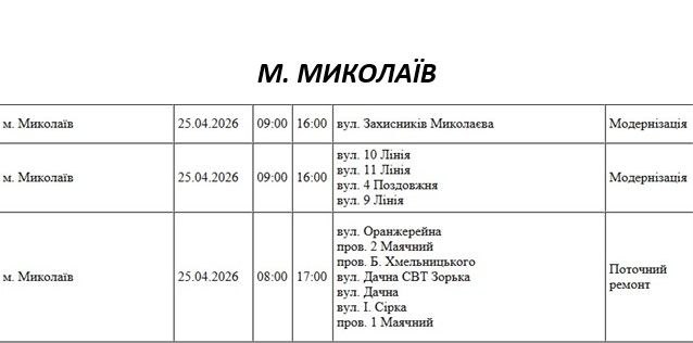 На Миколаївщині 25 квітня деякі вулиці залишаться без електропостачання. Це пов'язано із поточними ремонтними роботами, реконструкціями та технічним обслуговуванням.