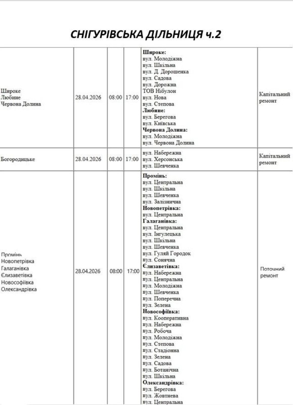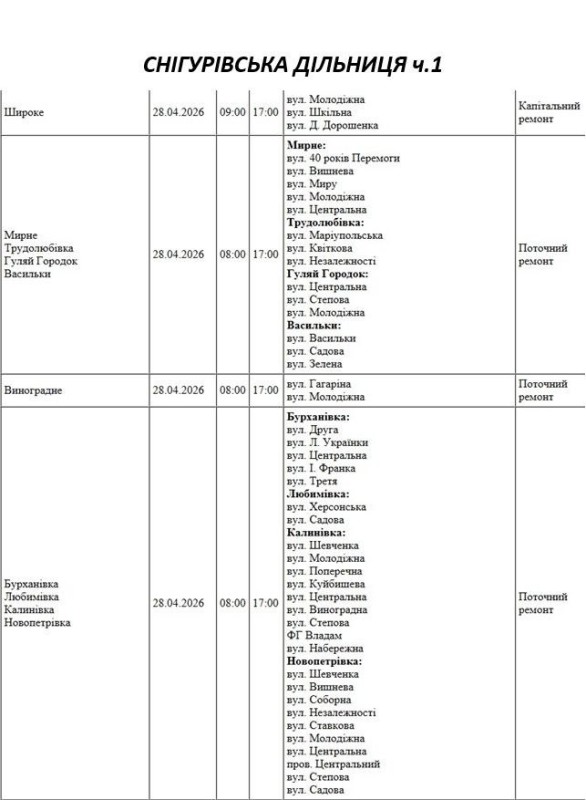 Снігурівська дільниця АТ «Миколаївобленерго» Інші дільниці