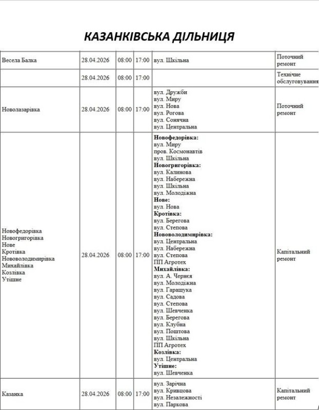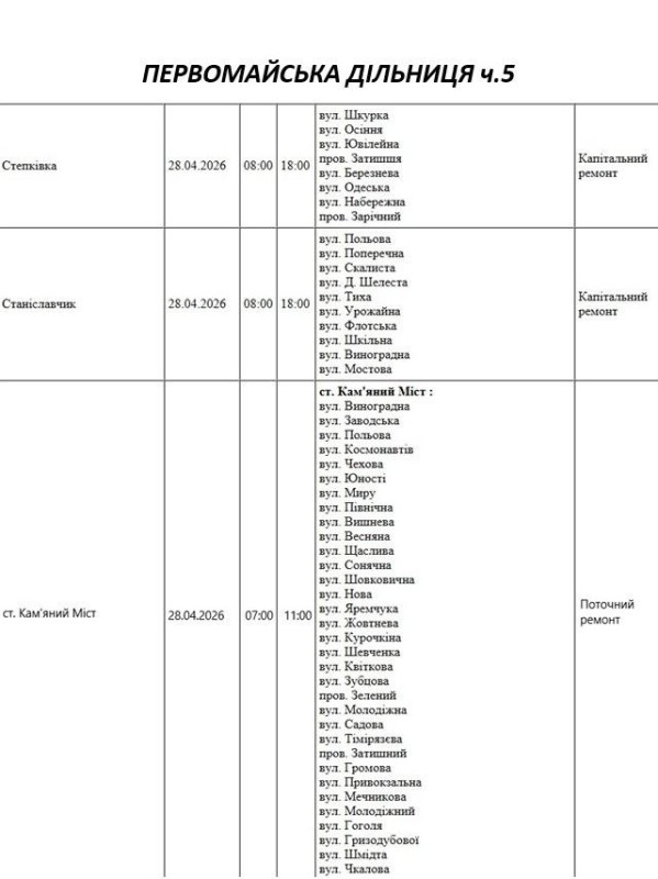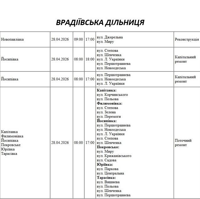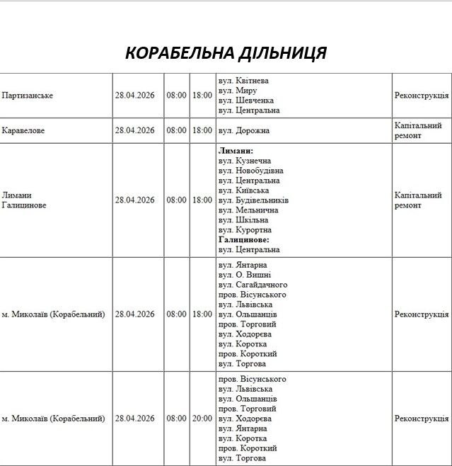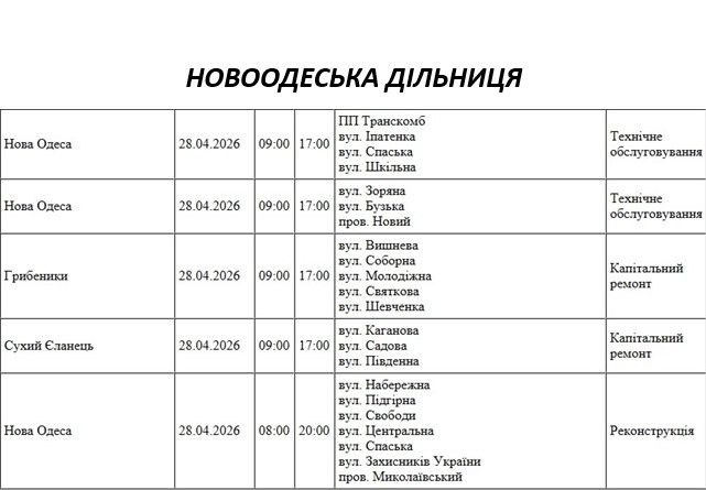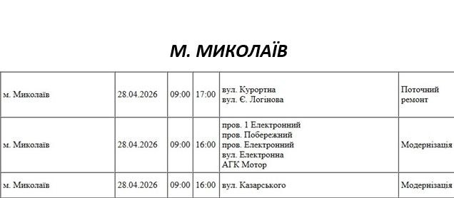 На Миколаївщині 28 квітня деякі вулиці залишаться без електропостачання. Це пов'язано із поточними ремонтними роботами, реконструкціями та технічним обслуговуванням