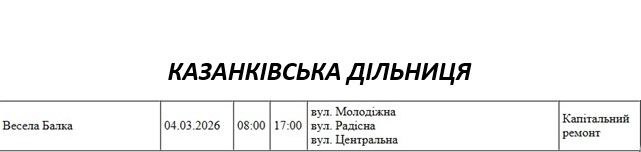 Графік відключення світла по адресах 4 березня, Казанківська дільниця АТ «Миколаївобленерго»