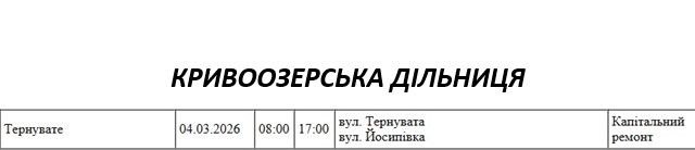 Графік відключення світла по адресах 4 березня, Кривоозерська дільниця АТ «Миколаївобленерго»
