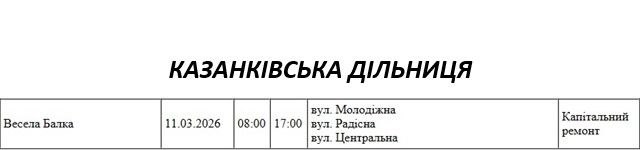 Графік відключення світла по адресах 11 березня, Казанківська дільниця АТ «Миколаївобленерго»