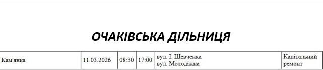 Графік відключення світла по адресах 11 березня, Очаківська дільниця АТ «Миколаївобленерго»