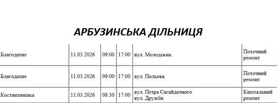 Графік відключення світла по адресах 11 березня, Арбузинська дільниця АТ «Миколаївобленерго»
