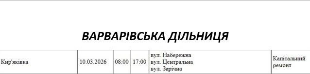 Графік відключення світла по адресах 9 березня, Варварівська дільниця. АТ «Миколаївобленерго» Інші дільниці регіону