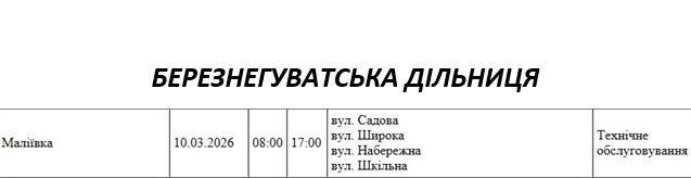 Графік відключення світла по адресах 10 березня, Березнегуватська дільниця. АТ «Миколаївобленерго»