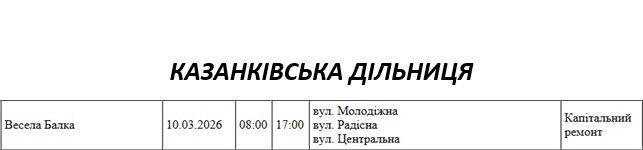 Графік відключення світла по адресах 10 березня, Казанківська дільниця. АТ «Миколаївобленерго»