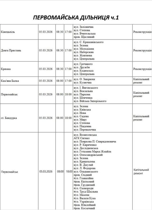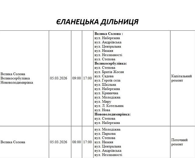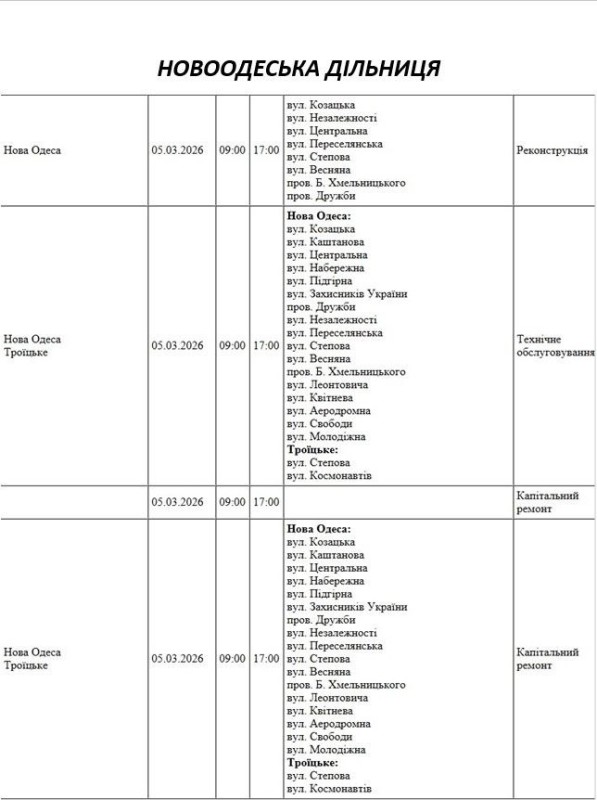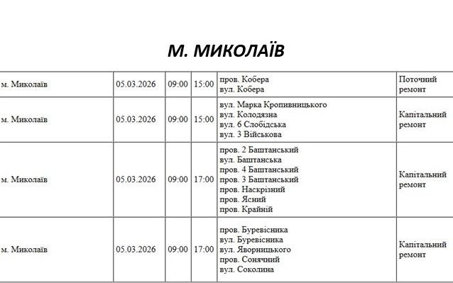 На Миколаївщині 5 березня деякі вулиці залишаться без електропостачання. Це пов'язано із поточними ремонтними роботами, реконструкціями та технічним обслуговуванням.