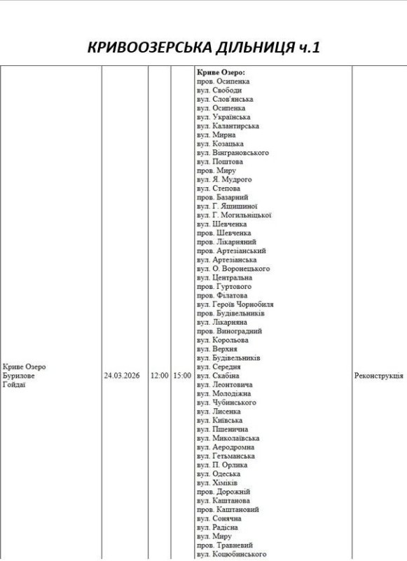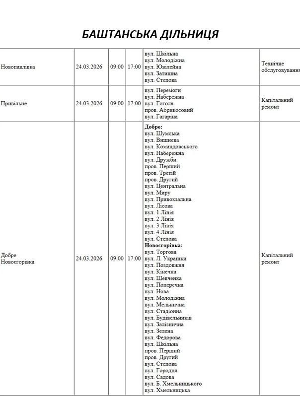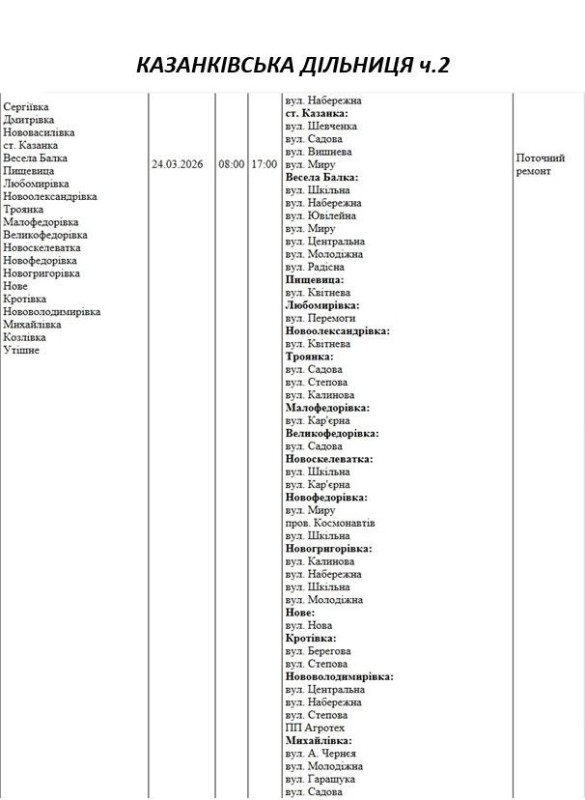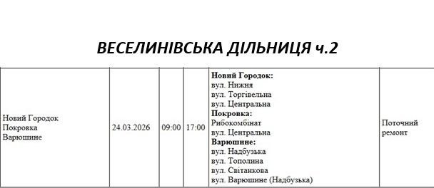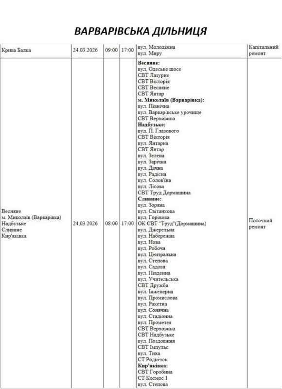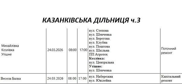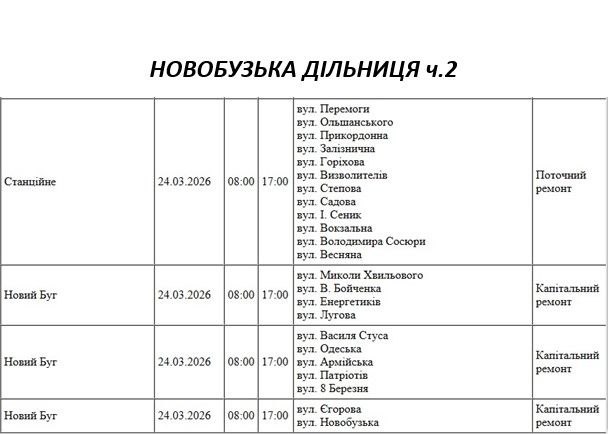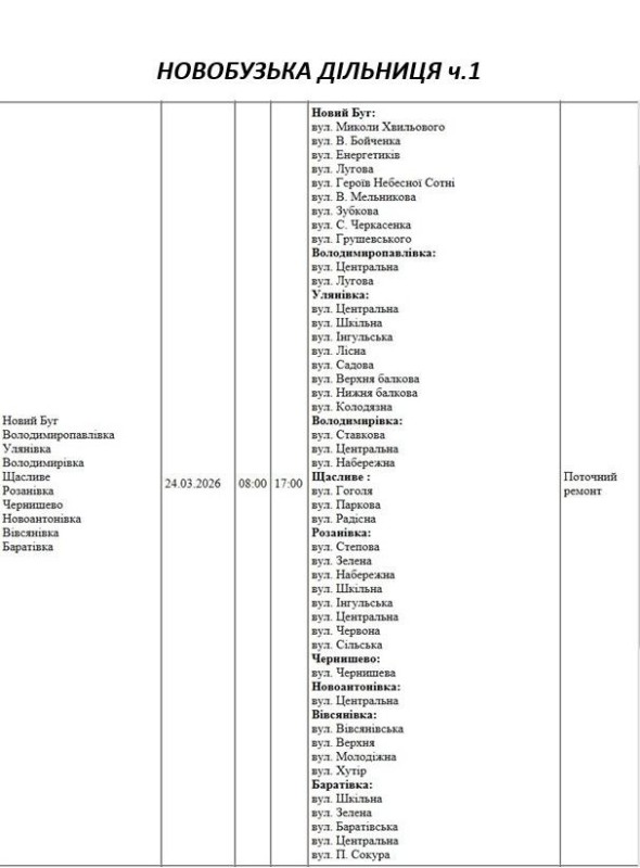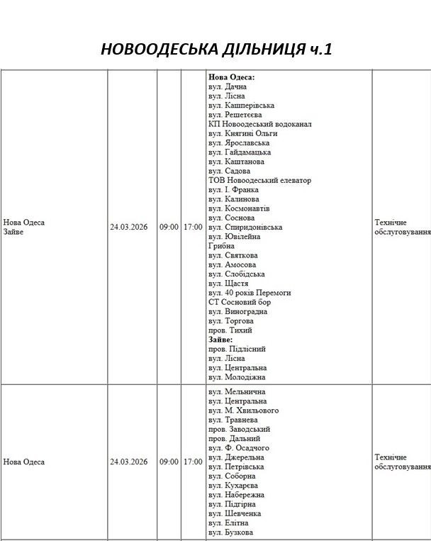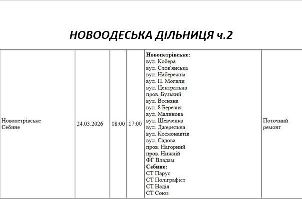 Графік відключення світла на Миколаївщині АТ «Миколаївобленерго» Новоодеська дільниця