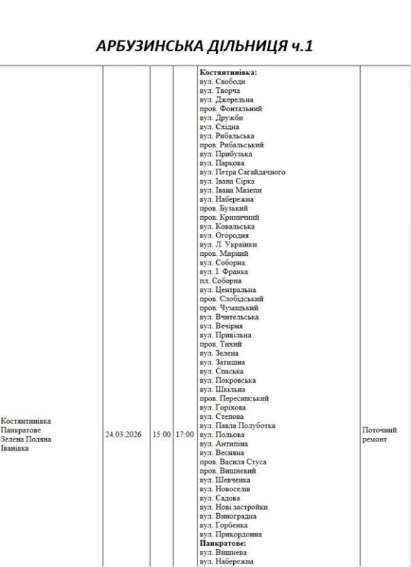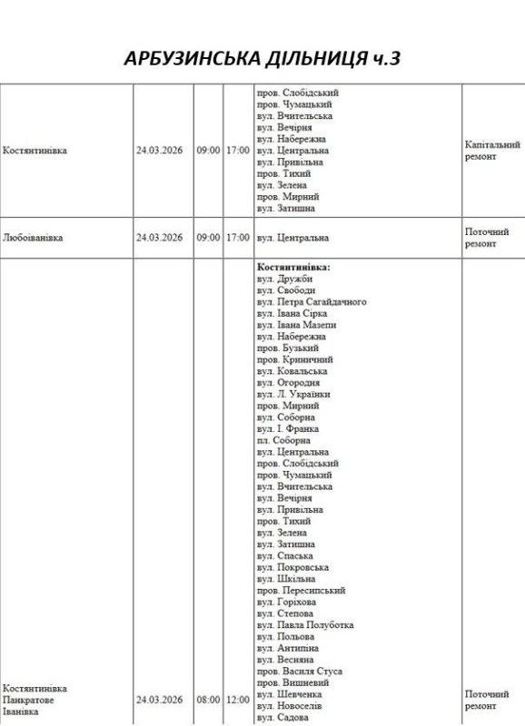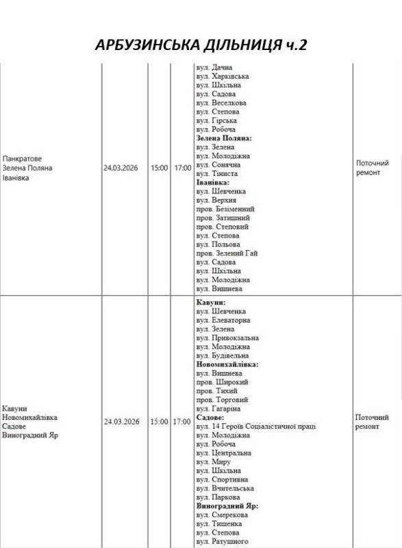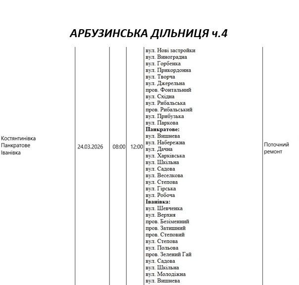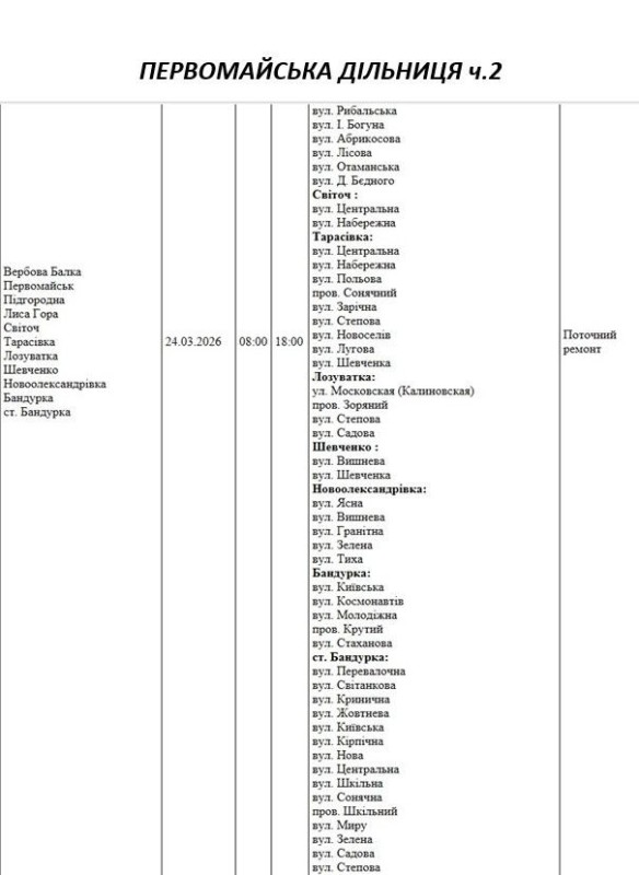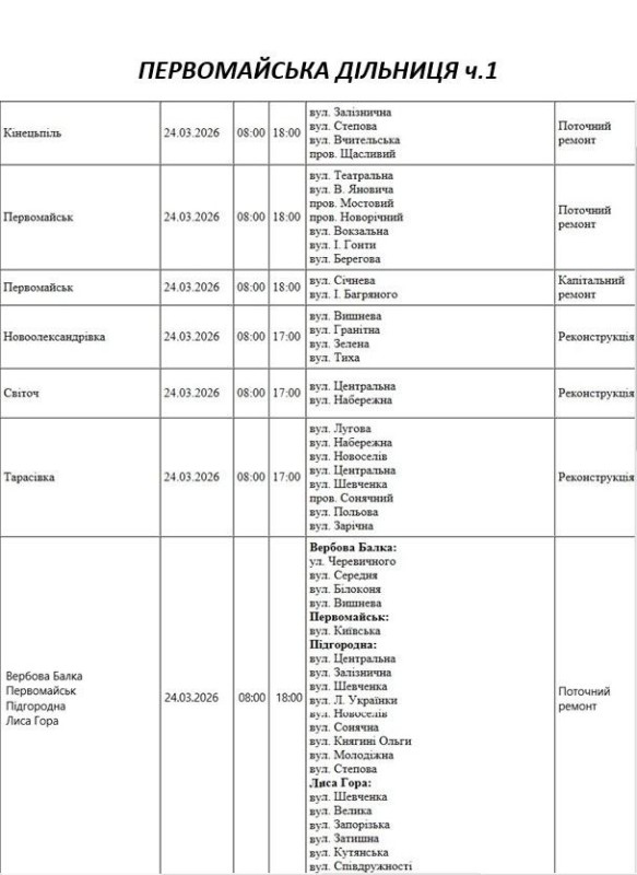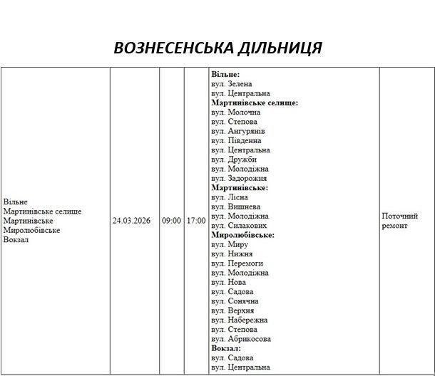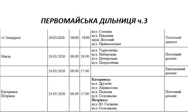 Графік відключення світла на Миколаївщині АТ «Миколаївобленерго» Первомайська дільниця