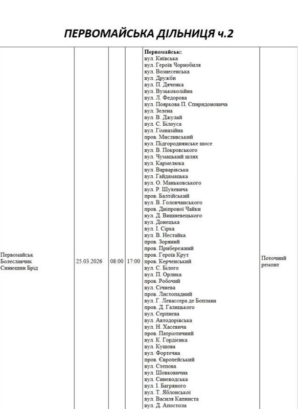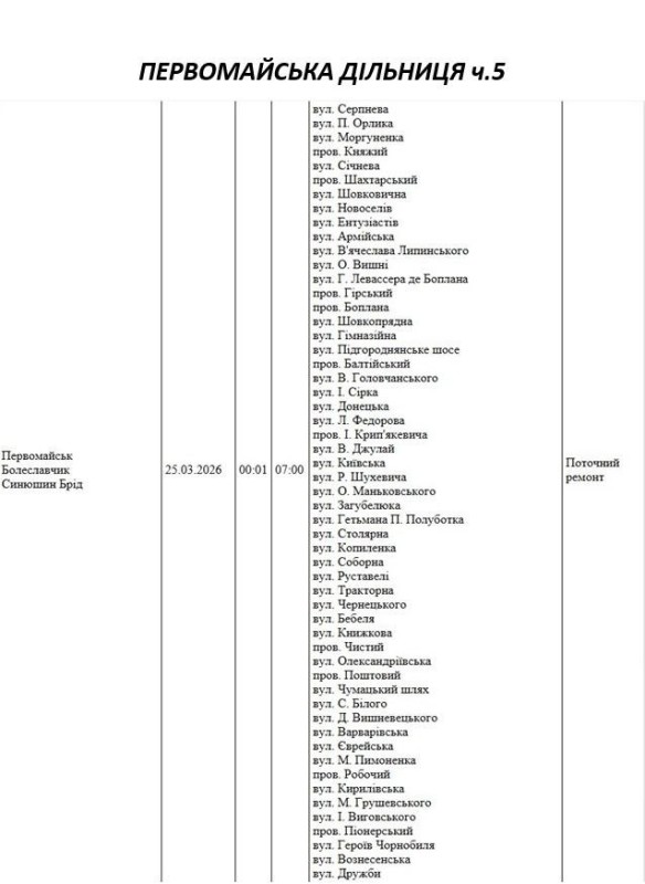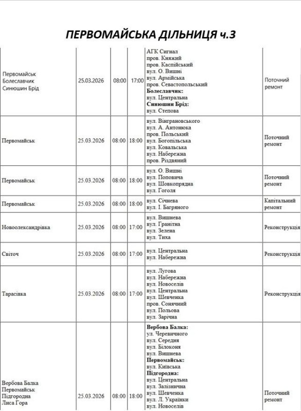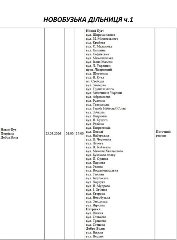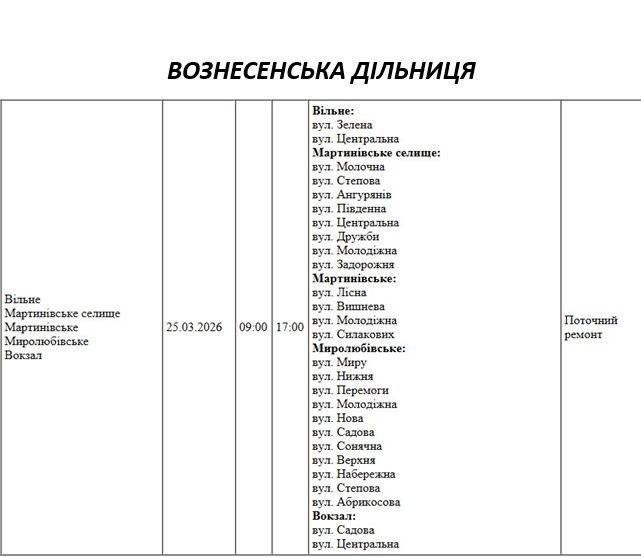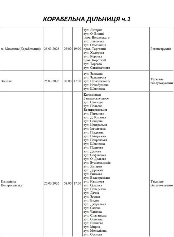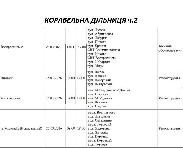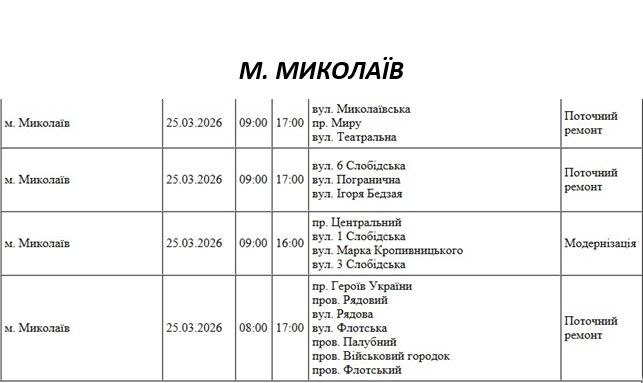 На Миколаївщині 25 березня деякі вулиці залишаться без електропостачання. Це пов'язано із поточними ремонтними роботами, реконструкціями та технічним обслуговуванням.
