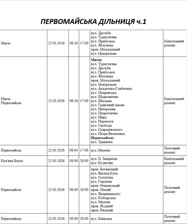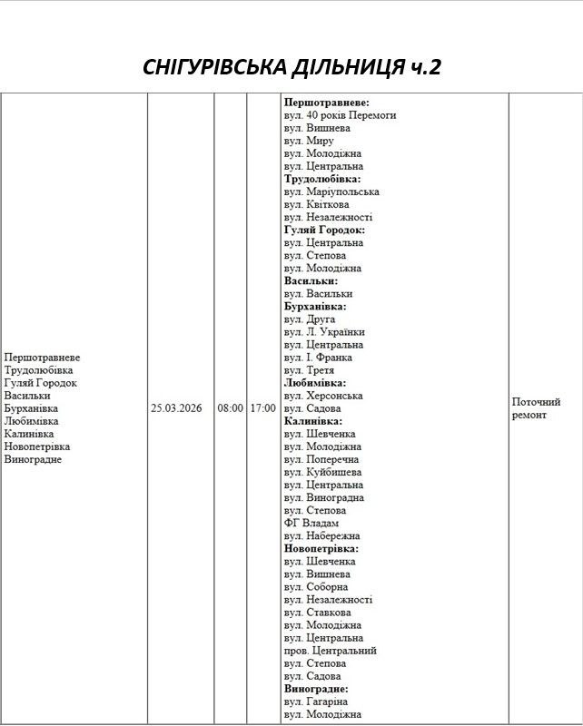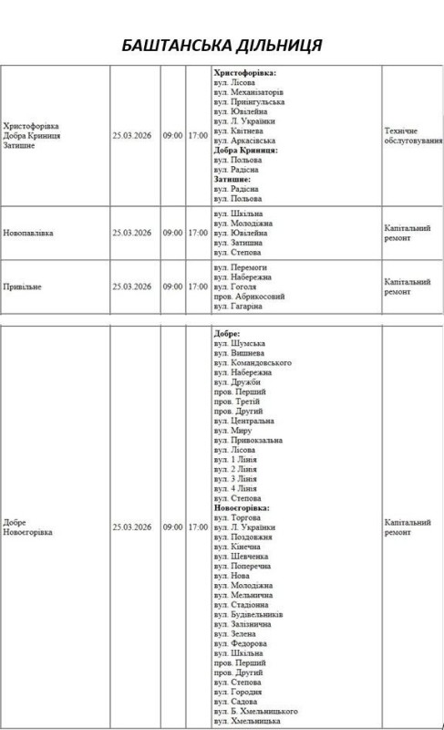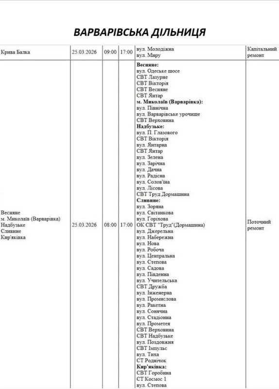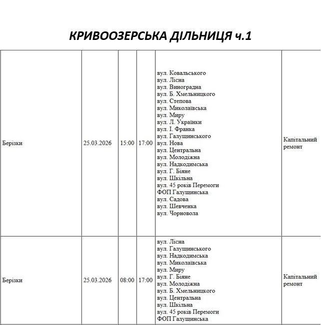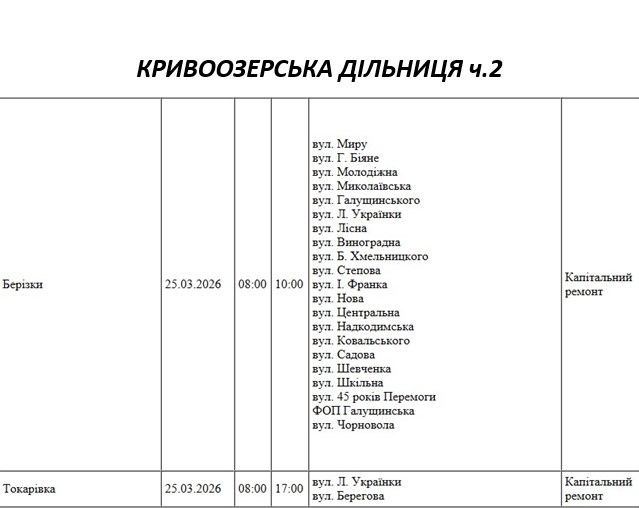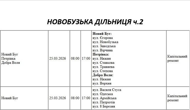 Графік відключення світла на Миколаївщині АТ «Миколаївобленерго» Кривоозерська дільниця