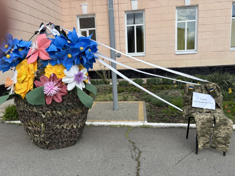 Прийшла оглянути композицію відома в місті ініціаторка оригінальних ідей та заходів Ірина Зозуля. Звернула увагу на те, що організатори та учасники не забувають про війну в країні, про тих хто дає можливість містянам відзначати свята, про тих на кого чекають рідні.