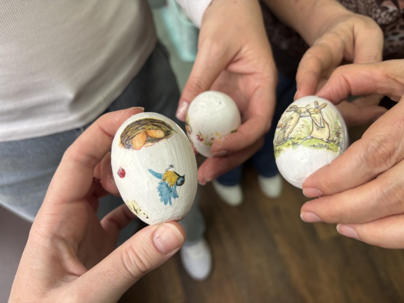 "Це був декупаж яєць, де учасниці — це члени родин безвісти зниклих та тих, хто в полоні — брали участь. Вони власноруч обирали кожну деталь, обривали її, клеїли, покривали лаком і сушили у кілька етапів. У результаті отримали великодні яйця, які зможуть радувати їх у святковий день", — каже Соловйова.