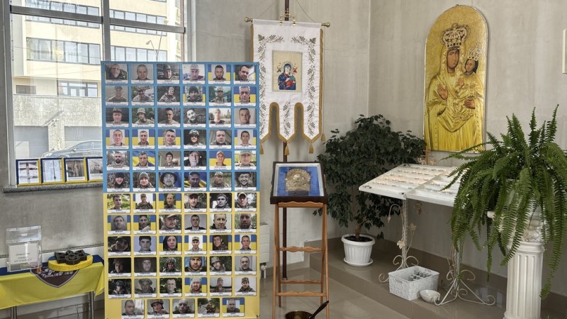 Після традиційної акції на площі її учасники пішли у Храм Всіх Святих Українського народу, де відбулося відкриття та освячення банеру з портретами безвісти зниклих та військовополонених.
