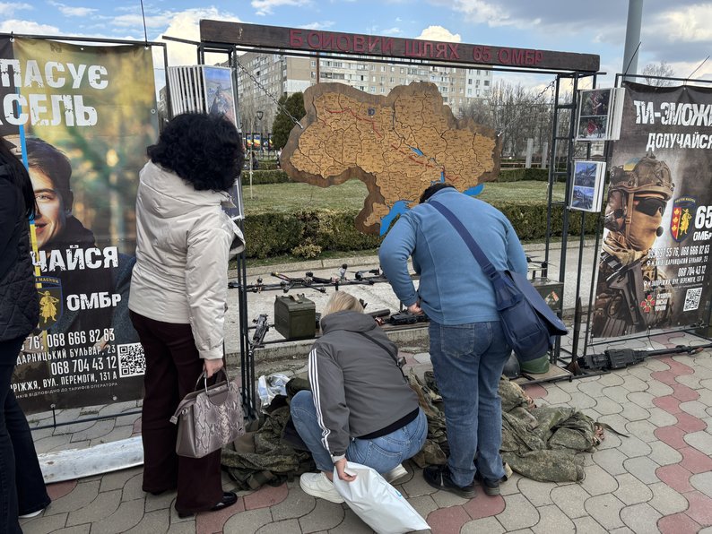 "Є тубуси, є також на стенді карта — це шлях нашої бригади, яка була сформована в 22-му році під Львовом і перекинута в тому ж році під Запоріжжя. Захищаємо Запорізький край починаючи з 2022 (ред. — року)".