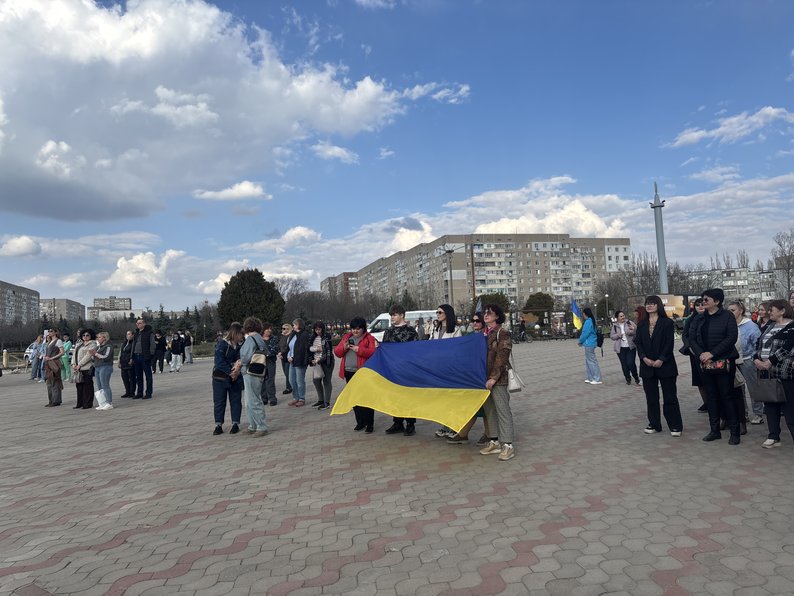 Люди з прапором під час благодійного концерту. Суспільне Миколаїв/Надія Ковтан