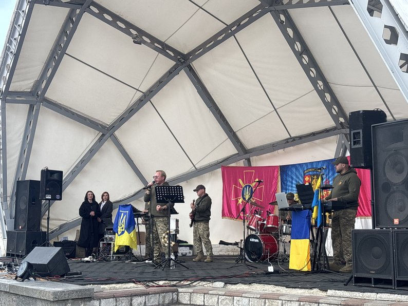 Військові виступають на сцені. Суспільне Миколаїв/Надія Ковтан