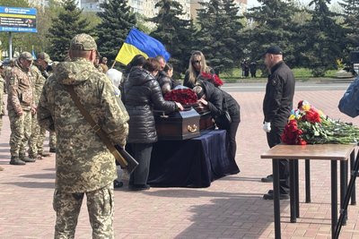 Рідні та близькі кладуть квіти, віддаючи останню шану біля труни. Суспільне Миколаїв/Надія Ковтан